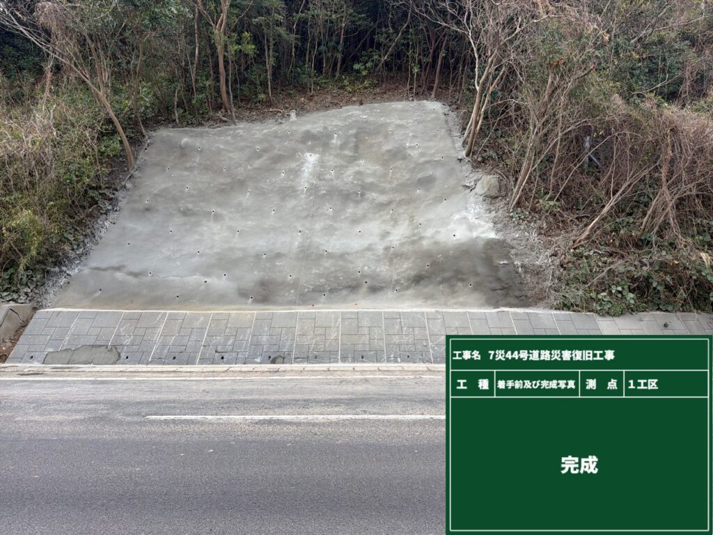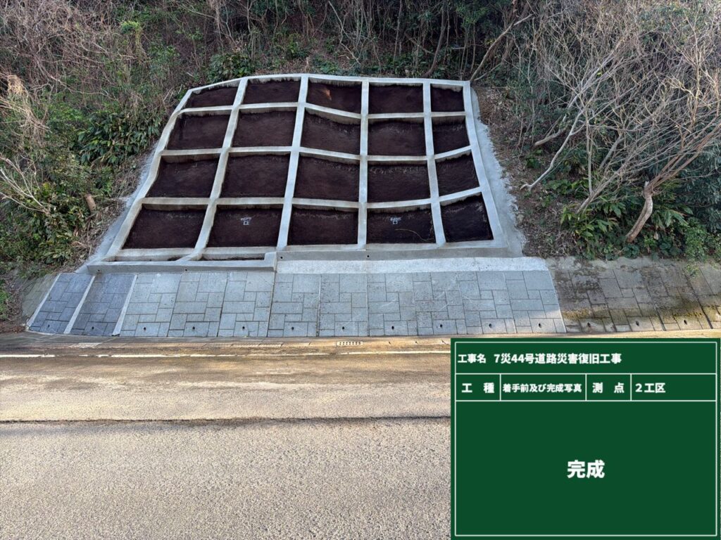 甑島の法面工事「7災44号道路災害復旧工事」が完了しました 2026年3月18日 最終更新日時 : 2026年3月18日 kedoin-doboku 薩摩川内市の甑島の桑之浦里港線での法面が完了しました。 工事期間中は、通行される皆様にご協力を頂きましてありがとうございました。 【1工区】 完 成 着工前 【2工区】 完 成 着工前